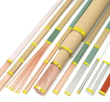 Yuvarlak ve dikdörtgen emaye, kağıt, nomex, mylar, poliamid, mika, kapton, ısonom, NMN, Örgülü bakır, örgülü alüminyum, CTC iletkenler, baralar veya cam elyaf kaplı bakır ve alüminyum iletkenler.